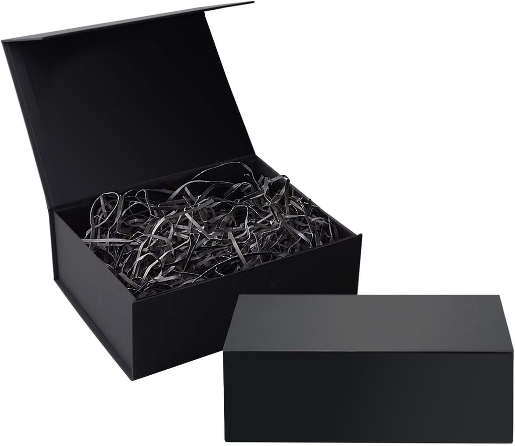 Gift Box with Magnetic Closure Black Collapsible Gift Box with Magnetic Closure Magnetic Closure Gift Box with Satin Ribbons Gift Box with Magnetic Closure (5 Pack) Crinkle Cut Paper Shred Filler